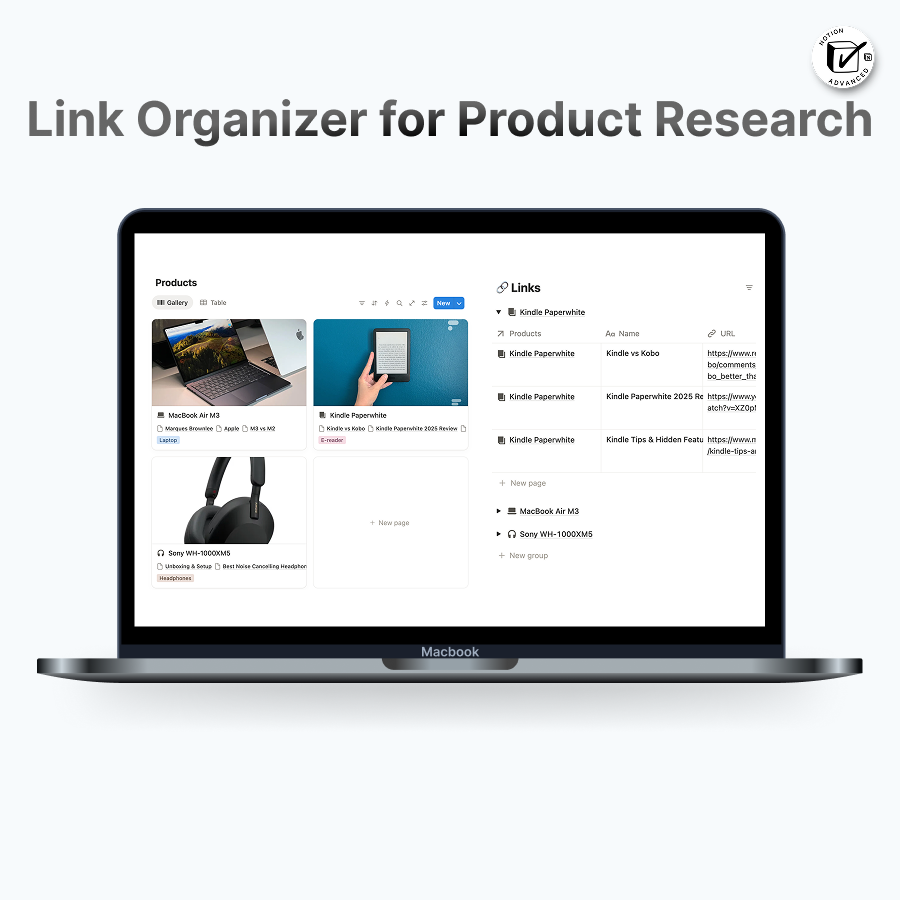 - Categorize each link by purpose (Review, Tutorial…) and format (Video, Article…)